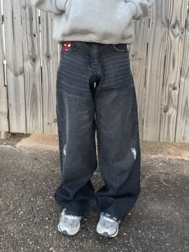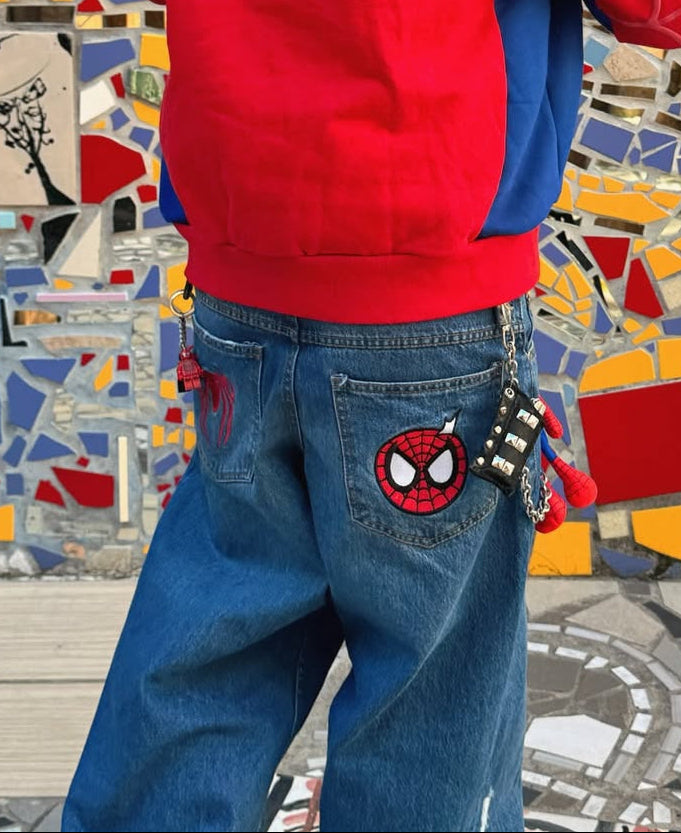 They feature a custom "Spidey" embroidery on the back, well-designed baggy fit and custom denim washes.