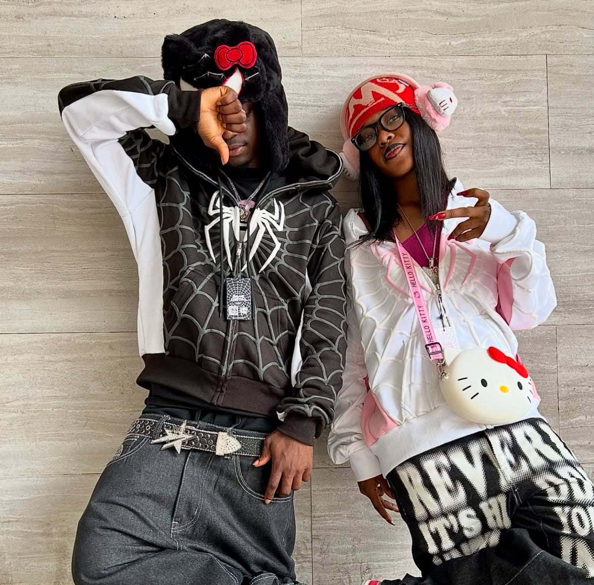It features a full zip over face double-layered hood, custom all over puff print and exclusive cut and sewn two tone paneling.